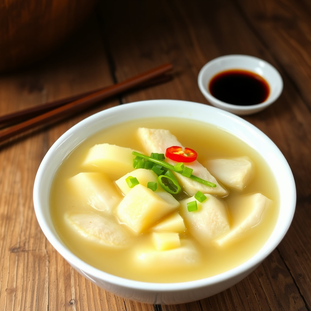 감자어묵국은 구수하고 담백한 국물 맛과 감자의 부드러운 식감, 어묵의 은은한 감칠맛이 어우러진 일상적인 국요리이다. 재료와 조리법이 간단하여 매일 먹기에도 부담 없고, 따뜻한 한 그릇이 위로가 되는 집밥으로 제격이다.